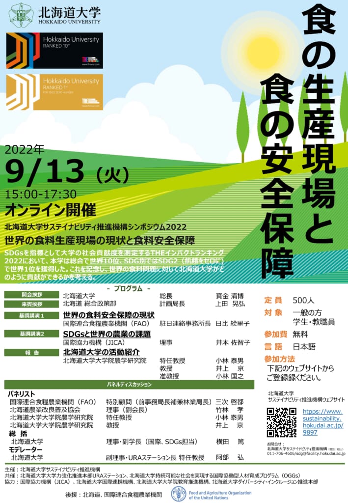 サステイナビリティ推進機構シンポジウム2022「世界の食料生産現場の現状と食料安全保障」開催のお知らせ