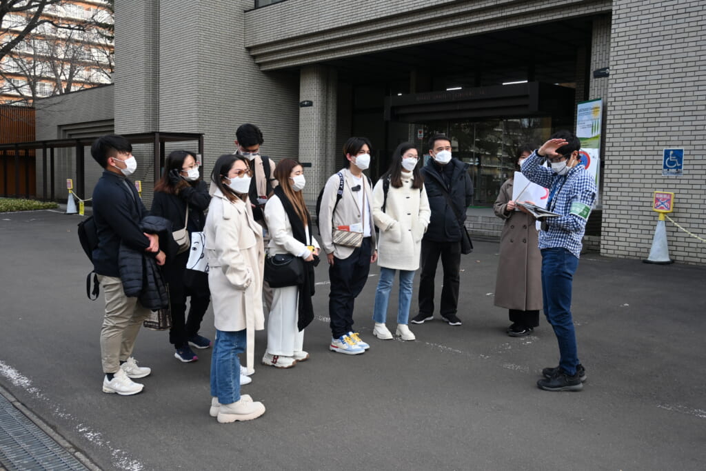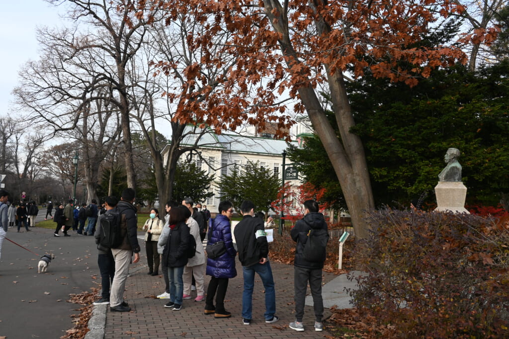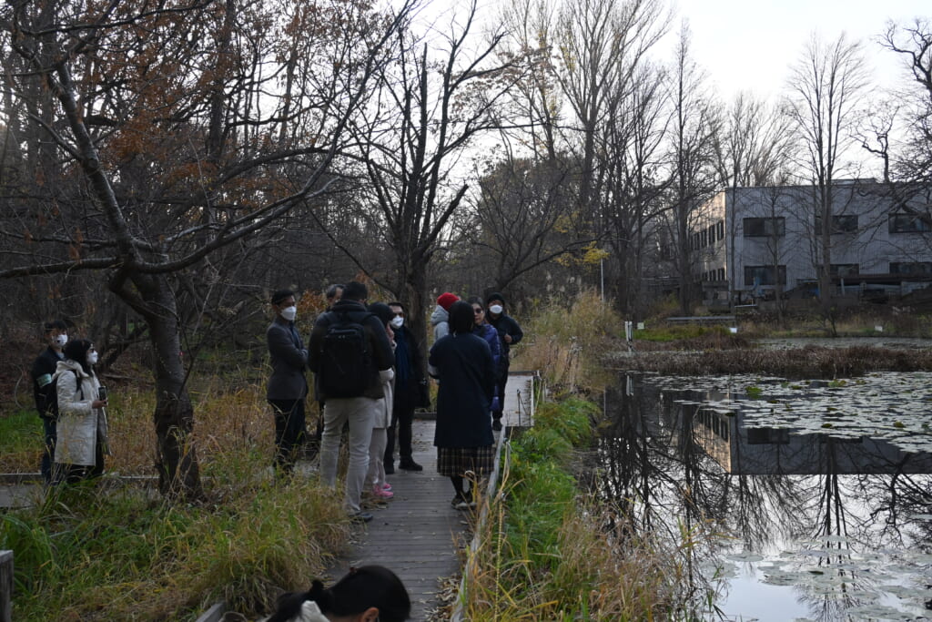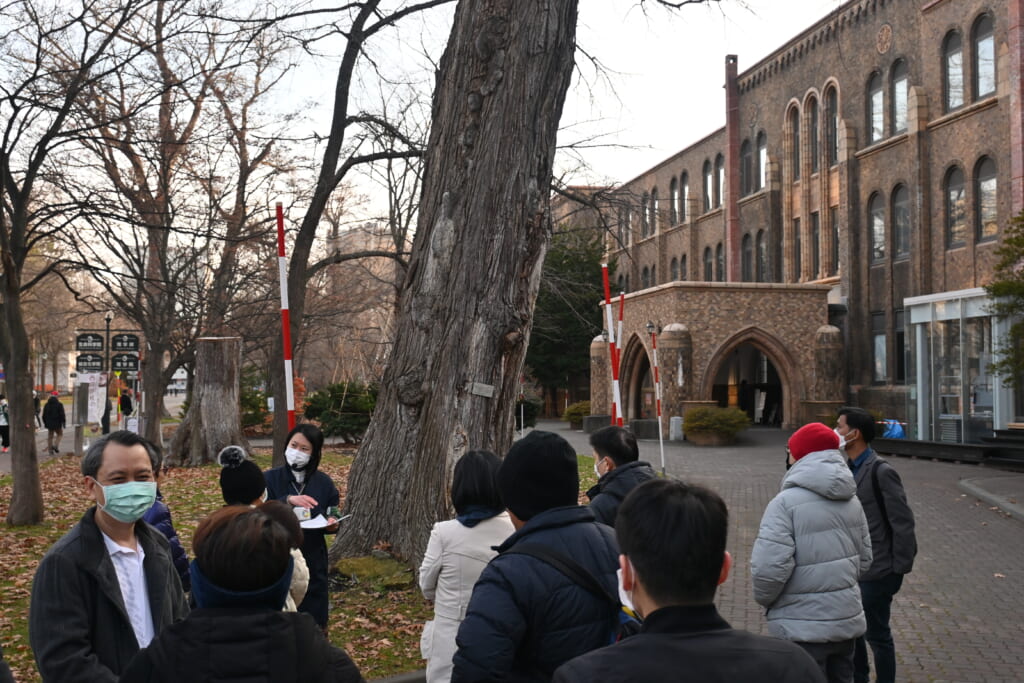 また前日の23日には、北大キャンパスビジットプロジェクト(HCVP)の学生によるキャンパスツアーを実施しました。国内外からの参加者に本学の歴史、自然、建築物及び最近の出来事などを英語でガイドし、晩秋の札幌キャンパスを満喫していただきました。