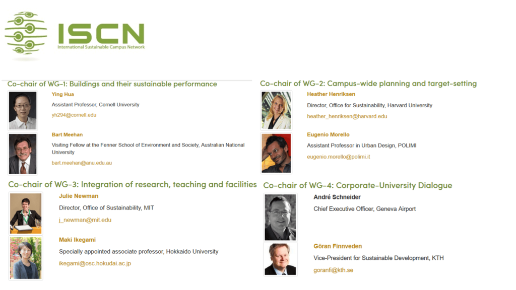 本学は2013年にISCNに加盟し、北海道大学サステイナブルキャンパスマネジメント本部の池上特任准教授(当時)は2016年より、ISCNのワーキンググループの共同議長を務めるとともに、Advisory Committee委員としても参画しています。
