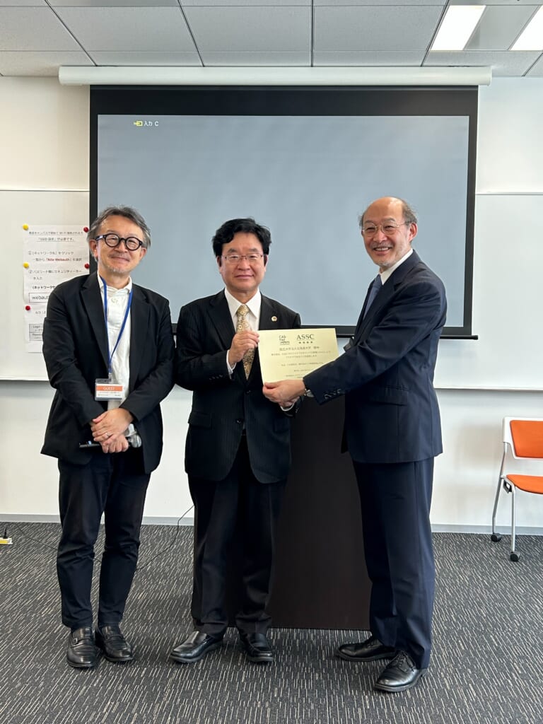 サステイナブルキャンパス評価システム(ASSC)認証式では、本学を代表して横田篤理事・副学長が認定証を受領しました。※ASSCの評価結果については「ASSC評価結果と活用」をご覧ください。