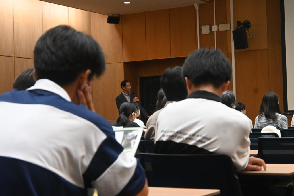 北海道大学とSDGsの関係性について講義を行いました。講義では、本学の4つの基本理念や、今日まで培ってきた本学の学問の自主、自由の精神が、SDGsにつながっていること、そしてTHEインパクトランキングで高い評価を得ていることを説明しました。また、部局の垣根を超えた研究活動や学生の主体的な活動が行われていることを紹介しました。こうした活動の根幹にあるパートナーシップが北海道大学の強みであることを説明しました。