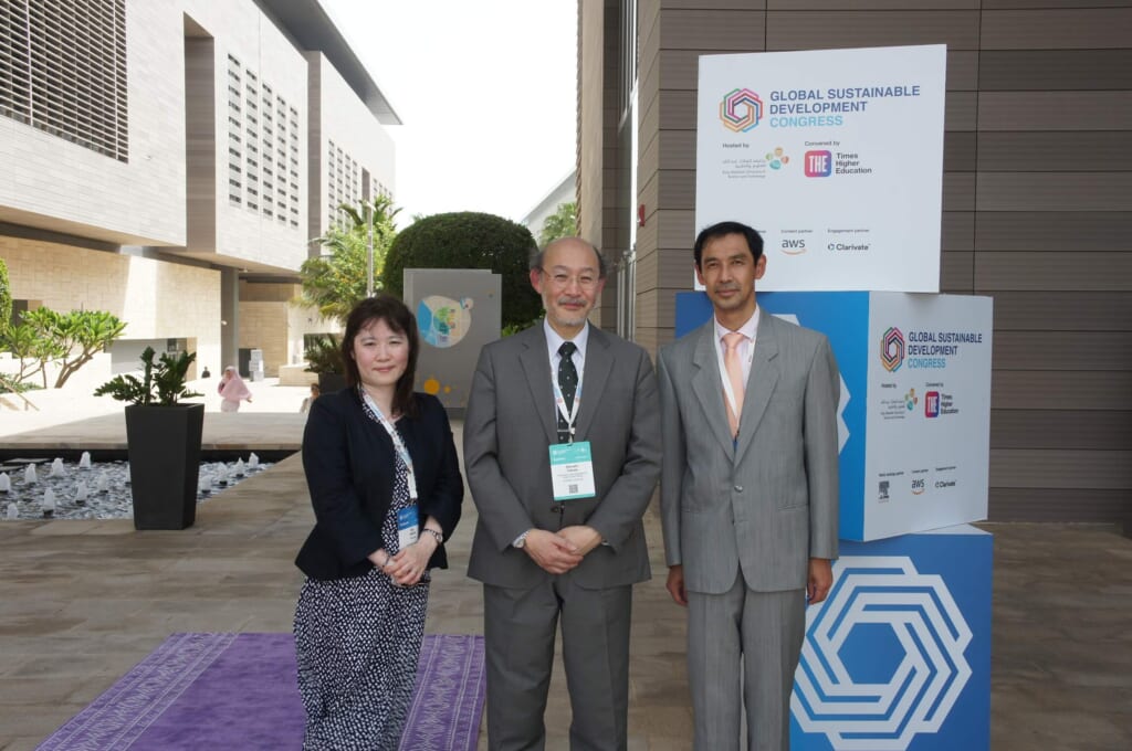 GSDC2023は、イギリスの高等教育専門誌「Times Higher Education(THE:ティー・エイチ・イー)」が主催し、67か国から538の教育機関が参加しました。日本からは本学が唯一の参加教育機関となり、本学からは横田理事・副学長のほか、秦絵里国際部長と加藤悟サステイナビリティ推進機構教授の3名が参加しました。