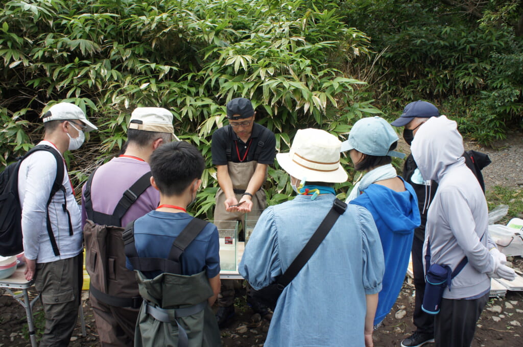 その後、余別コミュニティーセンターに移動してお昼休みを取ったあと、センターの横を流れる余別川で生き物の観察を行いました。