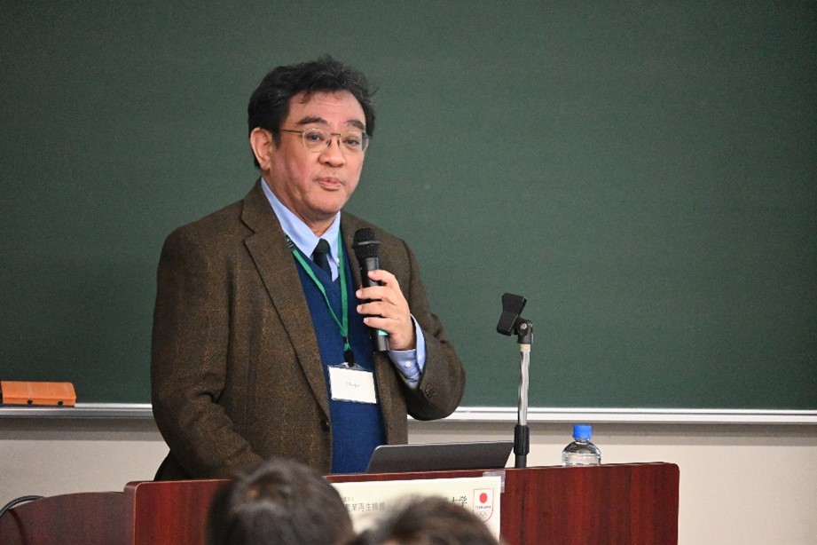 最初に、元オリンピックスキーアルペン日本代表で冬季産業再生機構会長である皆川賢太郎氏から、冬季産業再生機構が設立された目的や、観光庁が進める「国際競争力の高いスノーリゾート形成促進事業」について説明があり、その後、地球環境科学研究院の山中康裕教授が気候変動と社会変革について講演しました。2人からは、日本が海に囲まれた島国であり、世界的にウィンタースポーツに恵まれた環境であること、気候変動により世界中でスポーツに適した場所が失われつつあること、気候変動を防ぐためには社会変革が必要であることなどが説明されました。