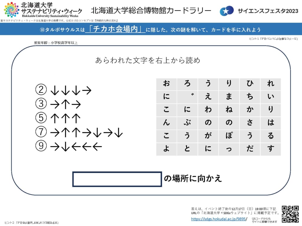 また、北海道大学総合博物館カードラリーを実施する予定です。ラリーで使用する10種類のカードは、2023年11月3日に北海道大学総合博物館で開催した「SDGsデー」の「探検カードラリー」で使用したもので、サイエンスフェスタ2023の3会場で配布します。