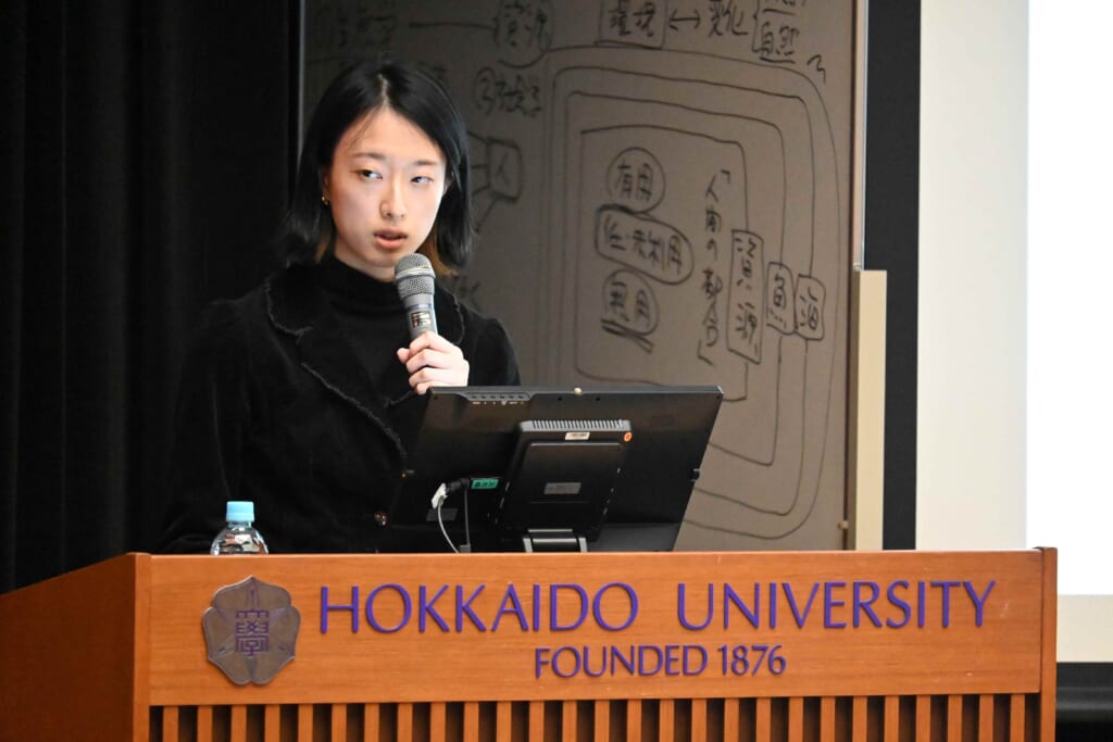 続く「SDGsに関する取組発表」ではJICA海外協力隊ご経験者 村上万龍 氏、北海道大学大学院 国際食資源学院 菅野隼人 氏、同水産科学院 小南彩夏 氏、北海道剣淵高校の生徒らが発表を行いました。