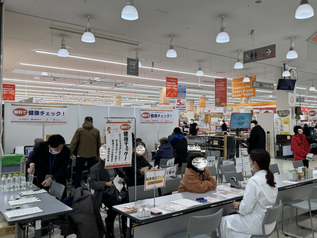 北海道大学、株式会社アークス、株式会社ラルズ、株式会社ツルハ及び札幌市の五者が進めるウェルネス推進プロジェクト「H-ARTs(ハーツ)」では、「無料で健康チェック!」を2024年2月 4 日(日)に実施し、約150人の方々に参加いただきました。