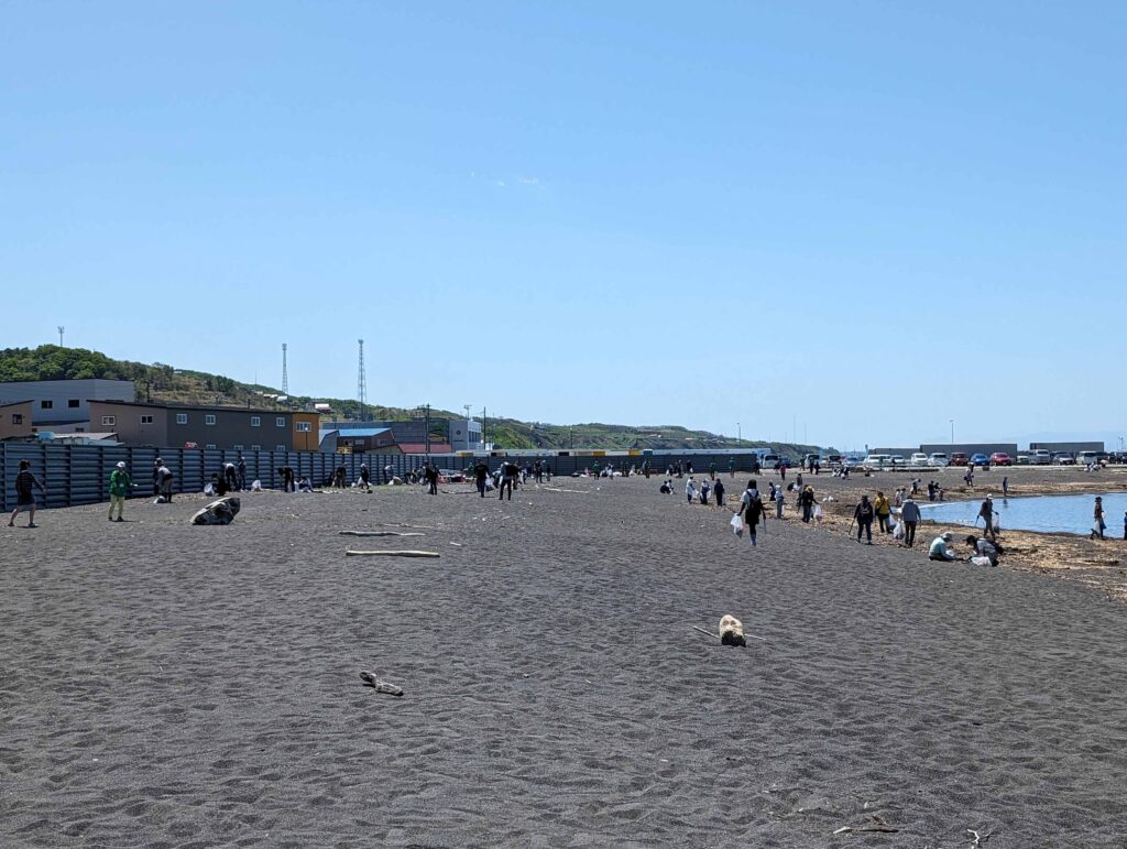 参加者たちは、北海道大学札幌キャンパスに集合した後、貸切バスで厚田海岸まで向かい、清掃活動を行いました。厚田海岸では、全体として330人が参加し、海岸に落ちている一般ごみ、プラスチックごみ、空き缶・びんなどを、石狩市のごみ分別のルールに従って仕分けながら拾い集めました。1時間弱の清掃活動でしたが、大勢で集中して清掃することで、開始する前には驚くほど多くあったごみの大多数を取り除くことが出来ました。本イベントに参加した学生・教職員からは「海洋ごみ・マイクロプラスチック問題について、直に知ることができる貴重な経験だった」「人がたくさん集まって動く、というのが大事だ」、「気軽に参加できて、疲れすぎない程度にごみ拾いができて、とても楽しかったです」といった感想が寄せられ、今回の活動を通じて、参加者一人一人が海洋ごみを考える機会にもなりました。