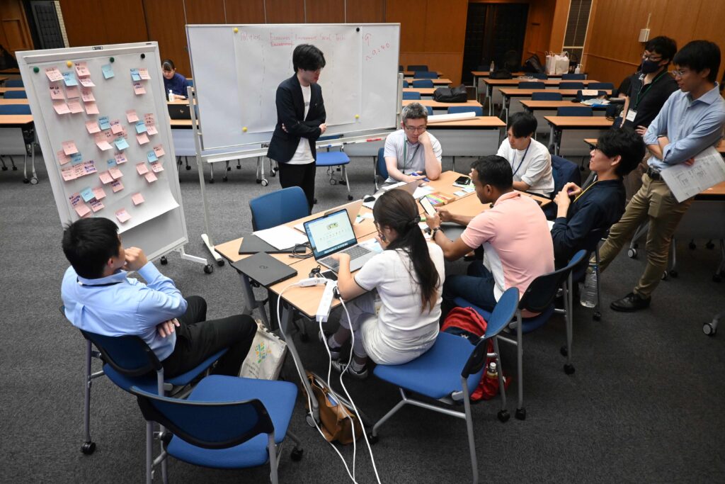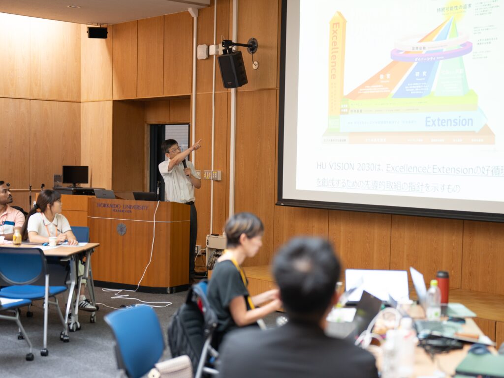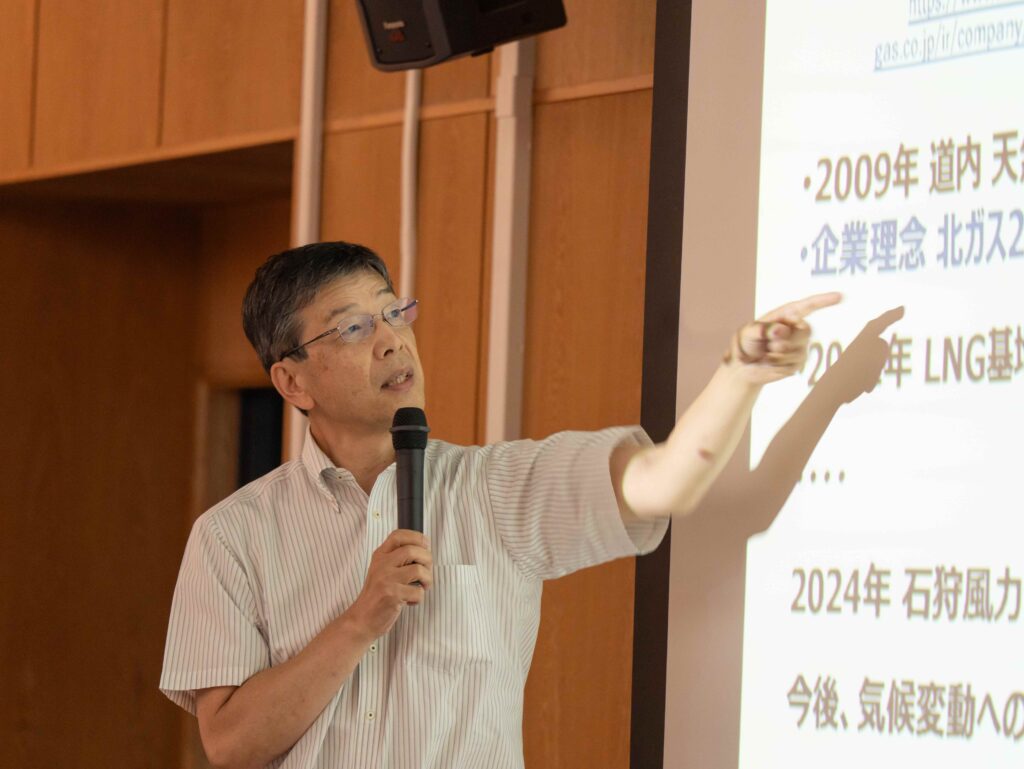 最終日9月4日のCO-CREATIONA WORK SHOPでは、サステイナビリティ推進機構及び施設部の職員は、大学のキャンパス内での一次エネルギー消費量や二酸化炭素排出量の推移を説明し、2050年のカーボンニュートラルに向けて電化率向上なども含めたさらなる対策が必要であることを説明しました。その後、学生たちは「2050のエネルギーシナリオ検討」「熱源転換へのアクションプラン」の2グループに分かれて新しいアプローチやアクションの検討を行いました。各グループには、札幌市環境局職員らと共に、サステイナビリティ推進機構及び施設部の職員も各グループに加わり、学生らがアイデア抽出にあたっての、情報提供やコメント提供を行いました。グループ討論後、学生達は各グループで検討したアクションの発表を行いました。