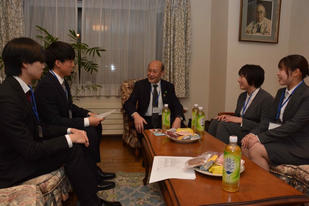 本式典ではこのほかに、寮生と横田理事・副学長との懇談、寮内所蔵品等の見学ツアーの時間が設けられ、現役の寮生、佐藤・新渡戸記念寮役員との交流の時間も設けられました。