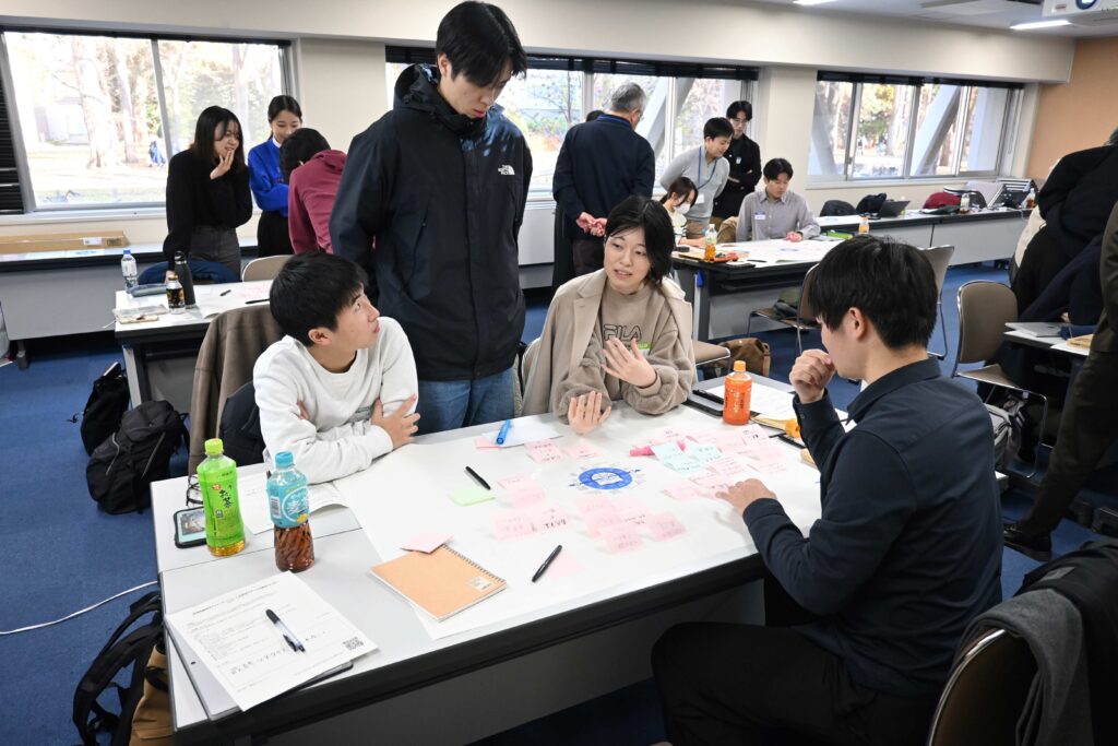 サステイナビリティ推進機構SDGs事業推進部門、大学院教育推進機構及び三井物産株式会社北海道支社は、株式会社GEOTRAの協力を得て、11月16日(土)、17日(日)の2日間、学生交流ステーションにおいて「地域課題解決アイディアソン case of 北海道大学×三井物産『サス学』」を開催しました。本学の学部・修士課程学生15名が、4つのグループに分かれてアイディア創出に挑みました。