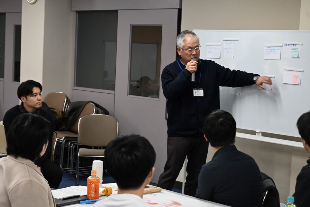 各グループのアイディア創出にあたっては、株式会社GEOTRAの小島拓也氏、三井物産株式会社北海道支社業務室の藤井健太次長と沖智恵子氏から助言がなされ、提言された事業案についてもコメントをいただきました。