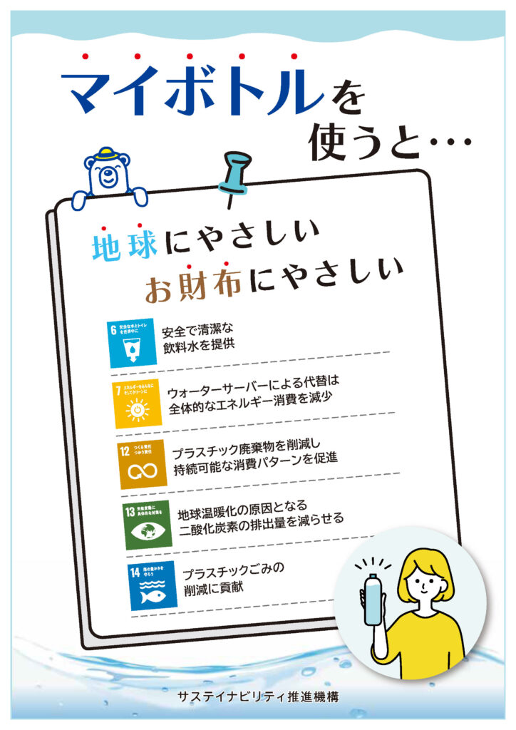 北海道大学は、今回の「浄水型ウォータースタンド」の試験設置を通して、マイボトルの普及を促進しプラスチックボトル使用量の削減に貢献します。