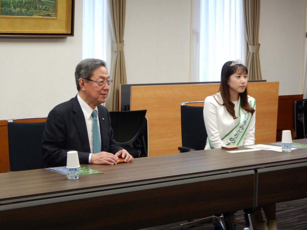 2024ミス日本「みどりの大使」安藤きらり氏、一般社団法人ミス日本協会 和田健太郎 専務理事、公益社団法人北海道森と緑の会(以下、北海道森と緑の会) 山谷吉宏 理事長、同 綾部勉 専務理事が北海道大学を表敬訪問し、横田篤理事・副学長と面談を行いました。
