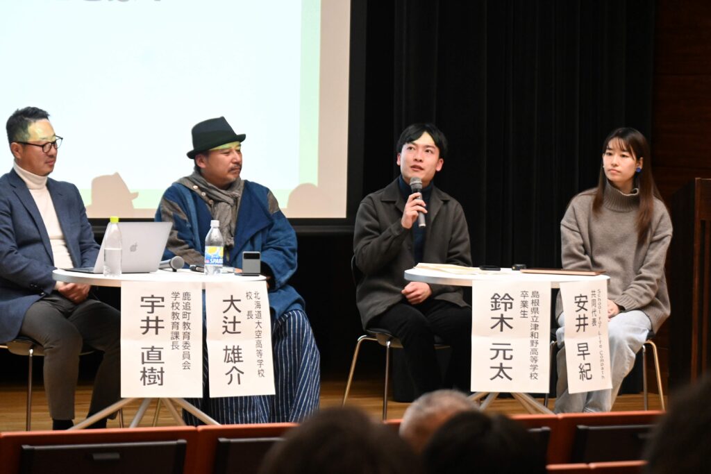 その後のトークセッションでは、各地で特色ある学びを推進する4人のパネリストから、最先端の学びと新たなまちづくりについての話題提供があり、持続可能な「地域の学校・教育」の在り方についての議論が行われました。