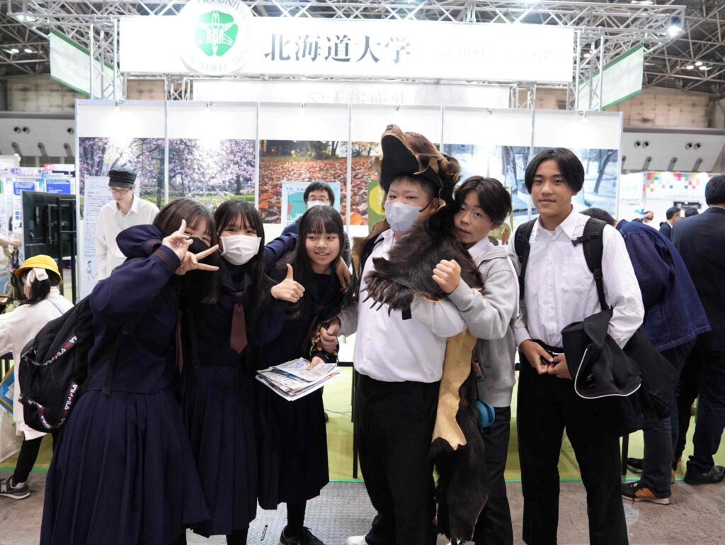 ブースでは、北海道のSDGs達成への貢献に関する取組について職員が紹介するとともに、博士後期課程の学生が「自身の研究テーマがどのように社会に還元され、世界の課題解決(SDGs)につながるのか」について考え、制作したポスターを「博士学生が描く、64のミライ」と題して展示し、参加者に対して学生が直接説明を行いました。