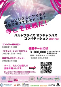北海道大学ハルトプライズ学内大会の詳細及びスケジュールは次のとおりです。