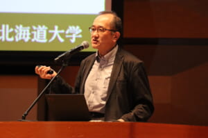 北海道大学理事・副学長で、サステイナビリティ推進機構SDGs事業推進本部長の横田篤理事・副学長が開催挨拶を行いました。 7月1日にSTVとサステイナビリティ推進機構との間で締結された連携協定に触れながら、北海道の市民一人ひとりにタイムリーにわかりやすく情報を発信し、お互いの知見の利活用を促す場を提供することで、世界の課題解決につながるよう、そして、持続可能な北海道の未来をつくっていくことを目指していくことが述べられました。