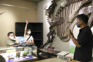 北海道大学総合博物館では、小林快次教授による「わくわく恐竜研究室ツアー」が行われ、夏休み中の小学生とその家族のみなさんが参加しました。ツアーでは、小林教授が博物館で展示している恐竜の化石をもとに、恐竜が生きていた当時の様子をどのように推測するのかについて説明を行いました。説明では時々クイズも出題されたり、ツアーに参加した子どもたちから小林教授に質問が出されたり、楽しい時間となりました。
