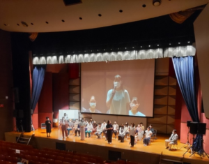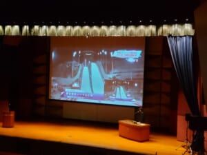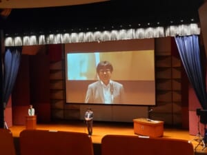 2022年北京冬季オリンピックの時に、報道としてどのように関わってきたのかについて講演がありました。講演では、オリンピックの試合会場からをどのように報道するのか、スキージャンプを例に説明がありました。当時の生放送の映像と、生放送の裏でおこなっていたスタッフの編集業務の映像を、スクリーンに同時映しながら説明し、「公平に伝える」ことの大切さと難しさを伝えていました。また、オリンピック放送制作業務とSDGsの関係をSDGsのゴールごとに説明がありました。