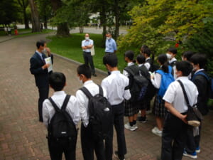 江別第二中学校では学習の一環として、生徒たちが複数のグループに分かれ、自らが関心のあるもの・場所を選択して訪問する「自主研修(校外学習)」を行っています。今回訪問した生徒の皆さんは「北海道大学のSDGs」について興味・関心を持ち来学しました。本学習では「講義」と「博物館訪問」を実施しました。