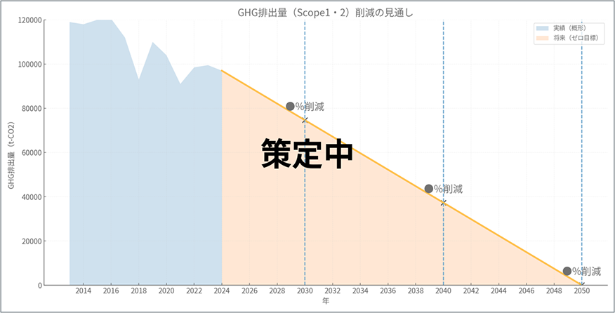 本学のカーボンニュートラルを目指す具体的な削減目標や行動計画を策定しています(2025年度中に策定予定)。
