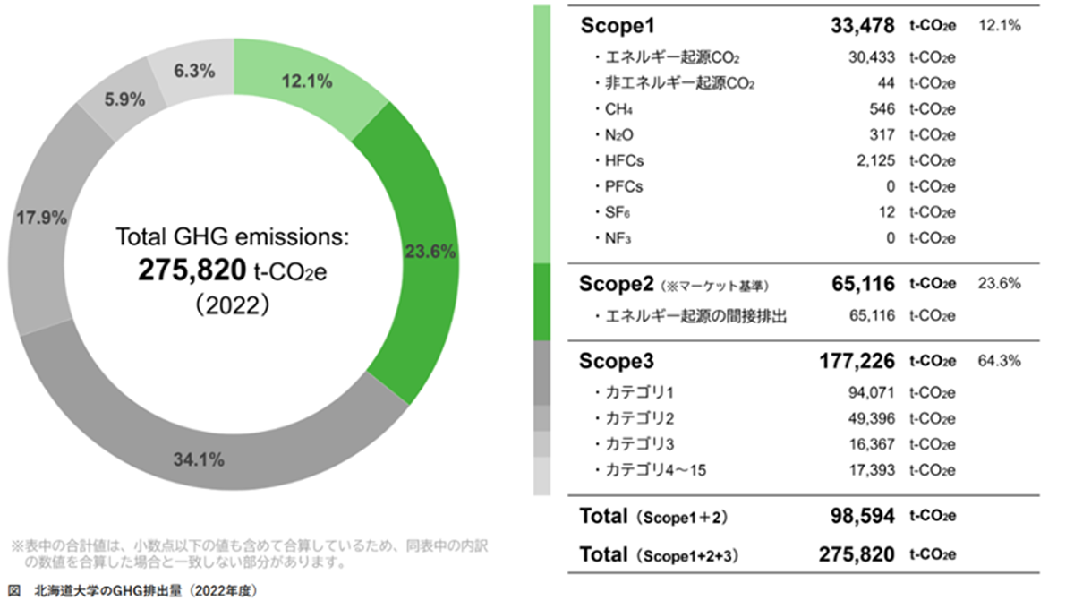 GHG(Greenhouse Gases)インベントリは、本学の札幌および函館キャンパス、地方フィールド等、すべての研究教育施設で排出される温室効果ガス※の量を国際基準に基づいて算出し、公開しています。